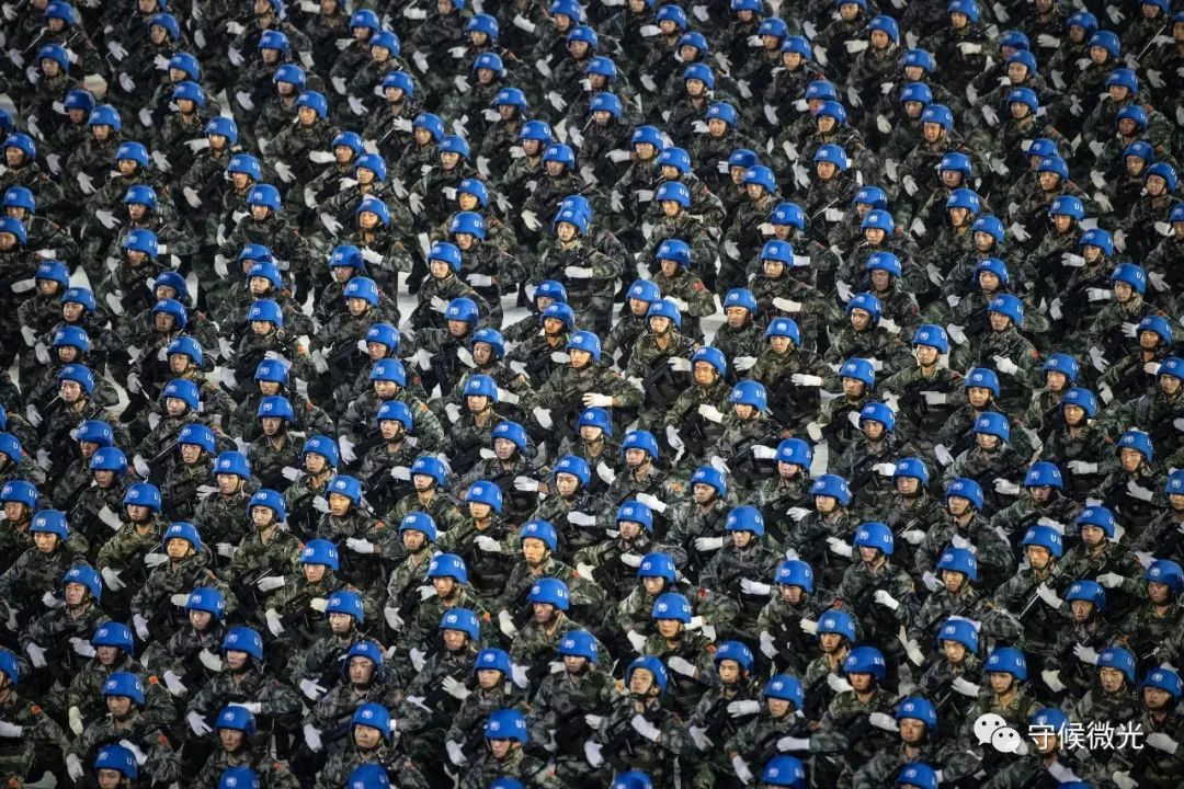 10月18日,武汉体育中心,第七届军运会开幕式上,代表中国维和官兵的方阵亮相。