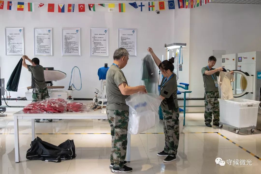 10月22日,军运村中,退伍老兵开设的干洗店为参赛选手们提供干洗服务。