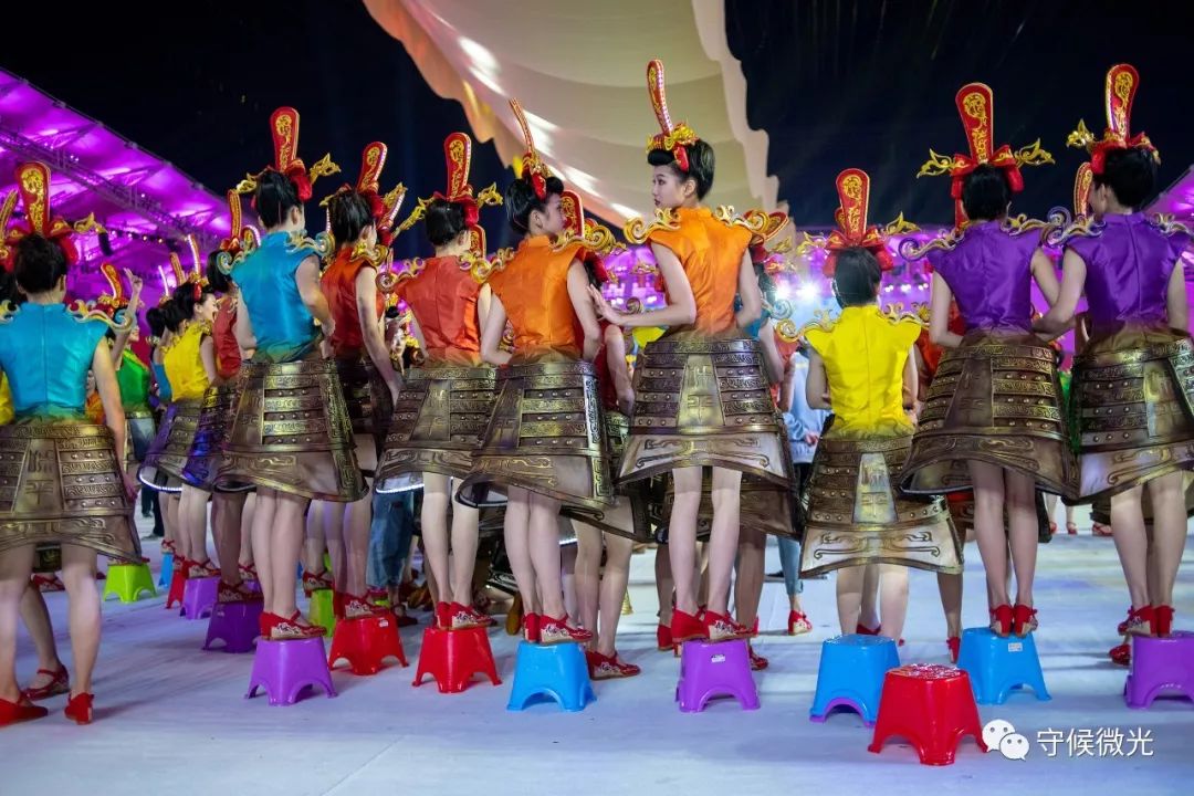 10月18日,军运会开幕式结束后,参加开幕式的100余位引导员合影。他们所穿的“编钟裙”由开幕式服装总设计师曲蕾设计,造型来源于湖北的曾侯乙编钟,同时加入LED灯,体现了古今融合的理念。