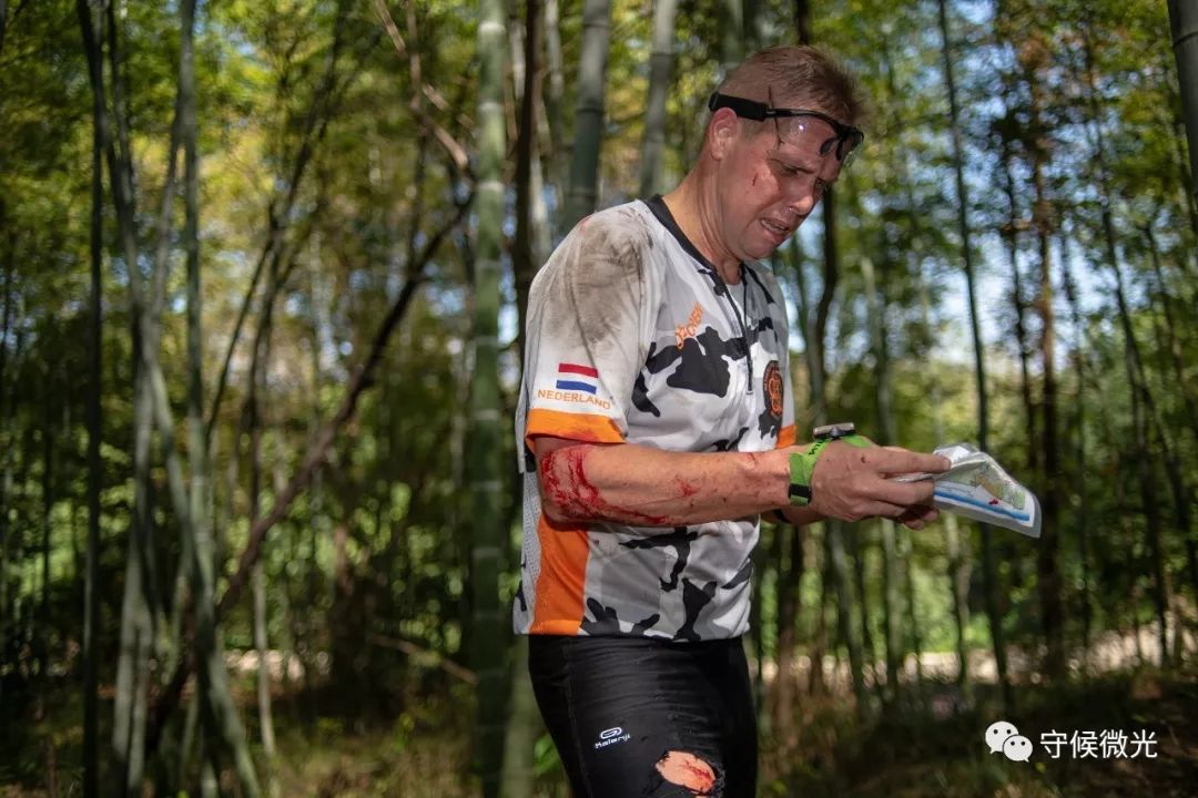 10月20日,军运会定向越野个人计时赛上,荷兰运动员查看地图。