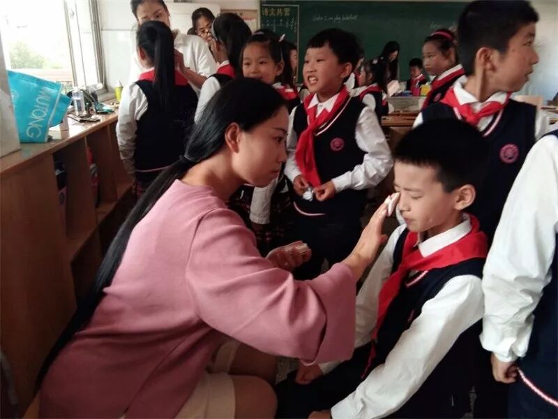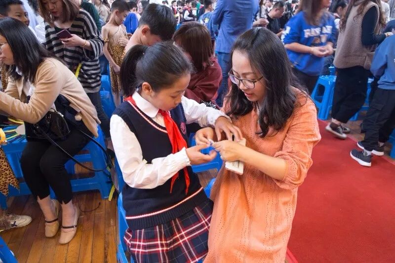 十岁,像鲜花一般美好,像黄金一般珍贵。十岁,洋溢着童年的欢笑,撒满着快乐的阳光,浸润着成长的喜悦。十岁,是成长过程中的一个站点,十岁是迈向少年时期的一个关键。10月24日下午两点,江阴市华士实验小学四年级的全体师生及家长欢聚在学校体育馆,举行“有爱相伴,快乐成长”十岁成长礼活动。中午,强大的妈妈后援团陆续来到了校园里,为孩子们精心打扮。她们专注地为孩子们描绘出一个个精致的妆容。