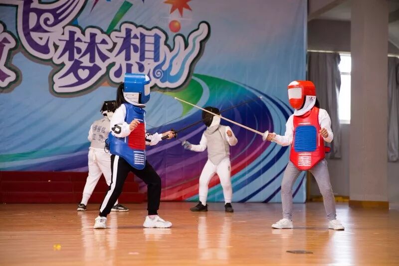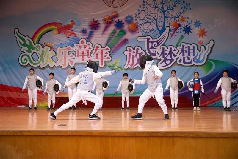 “多彩课间、美丽阳光、亮剑华小”,华小击剑队的队员们为我们展示了充满动感与美感的击剑表演,刀光剑影,气势如虹。