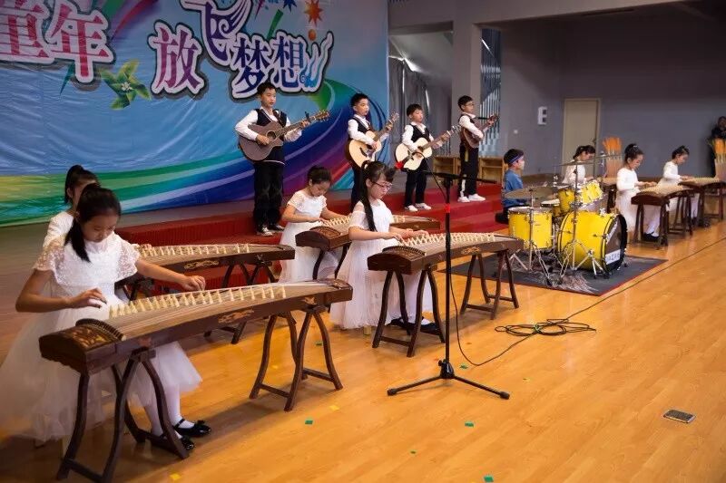 看,孩子们给家长和老师们献上了一场视觉盛宴。首先登场的是乐器合奏,听,古筝、吉他、架子鼓完美地演绎了一曲《你笑起来真好看》,清新悦耳,扣人心弦。