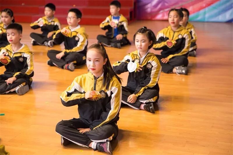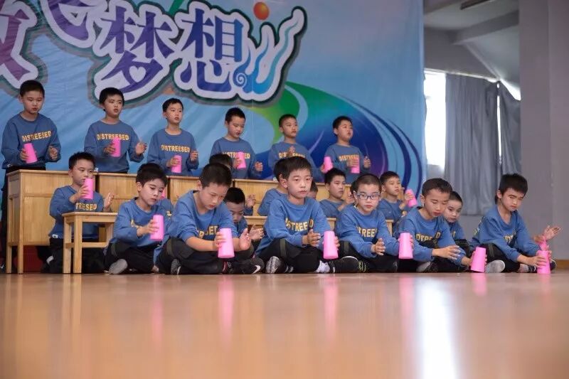 四(1)班的杯子舞动作整齐划一,气势磅礴。