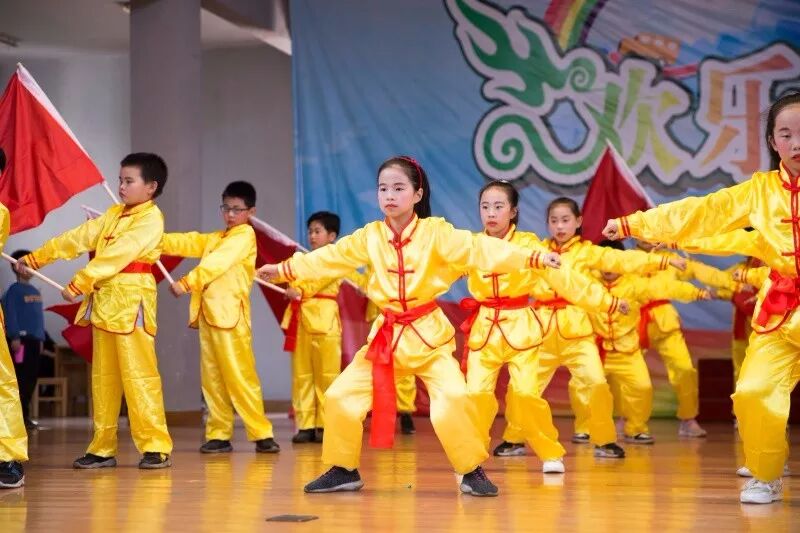 中华武术,源远流长,中华武术,博大精深。瞧,意气风发的少年们向我们走来了。四(4)班带来的武术操《精忠报国》,剑啸蓝天,气贯长虹。