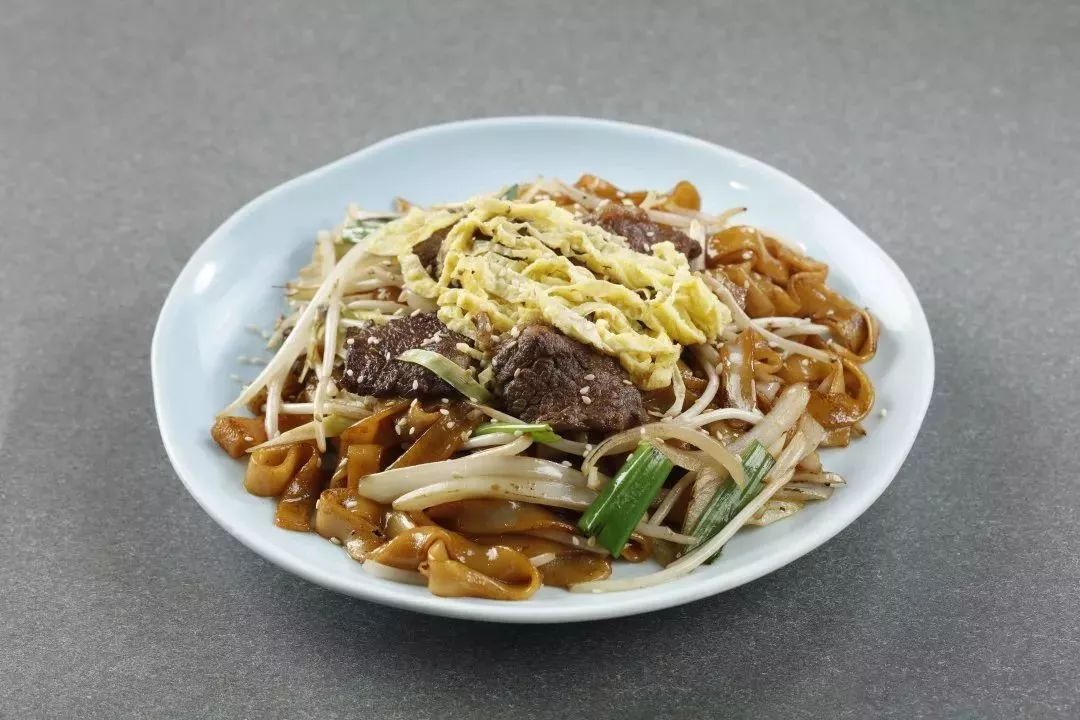 一道由芽菜、河粉、牛肉等材料制作而成的粤菜。河粉爽滑劲道,牛肉嫩滑焦香,盘中干爽无汤汁,入口味美,回味无穷。