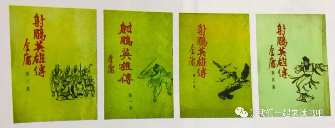《射雕英雄传》(全16集)合订本,香港光明出版社印行版第一集,2-5集由香港三育图书文具公司出版,图为其中1-4集。