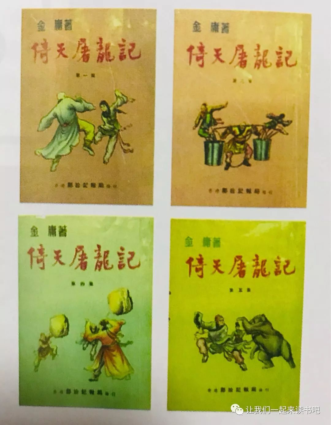 《倚天屠龙记》(全28集)合订本,香港武史出版社出版,邝拾记报局发行,均为1961年出版,图为其中1、2、4、5集。