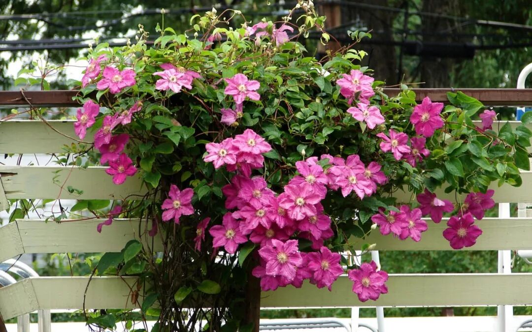 铁线莲,老花友喜欢叫它“小铁”,在园艺圈把它称为“藤本皇后”。知道啥叫“皇后”不?就是说只要她开花,别的花都不能比只配做她的丫鬟。你要是种藤本不玩小铁,就好像厨子不会炒菜一样奇怪。