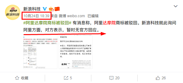 另外,据新浪科技10月24日18点给出的消息,阿里方面对于商标被驳回的事情还没有做出回应,后续新动态小编也将持续为大家关注。