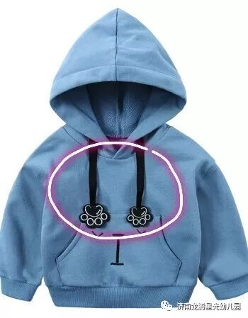 幼儿园里幼儿因着装不慎而造成意外的事我们都有所耳闻。男孩子被裤链夹伤生殖器,幼儿被风帽带子卡在滑滑梯里动弹不得,与同伴互扯围脖紧勒脖子无法呼吸,裤子太紧不易穿脱大小便失禁……年轻的爸爸妈妈不能只按照成人的审美观念来打扮幼儿,有些衣服上所谓的“流行元素”不仅束缚了幼儿童真可爱的天性,而且还影响了幼儿正常的学习和游戏,甚至带来了很大的安全隐患。