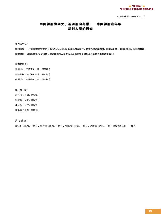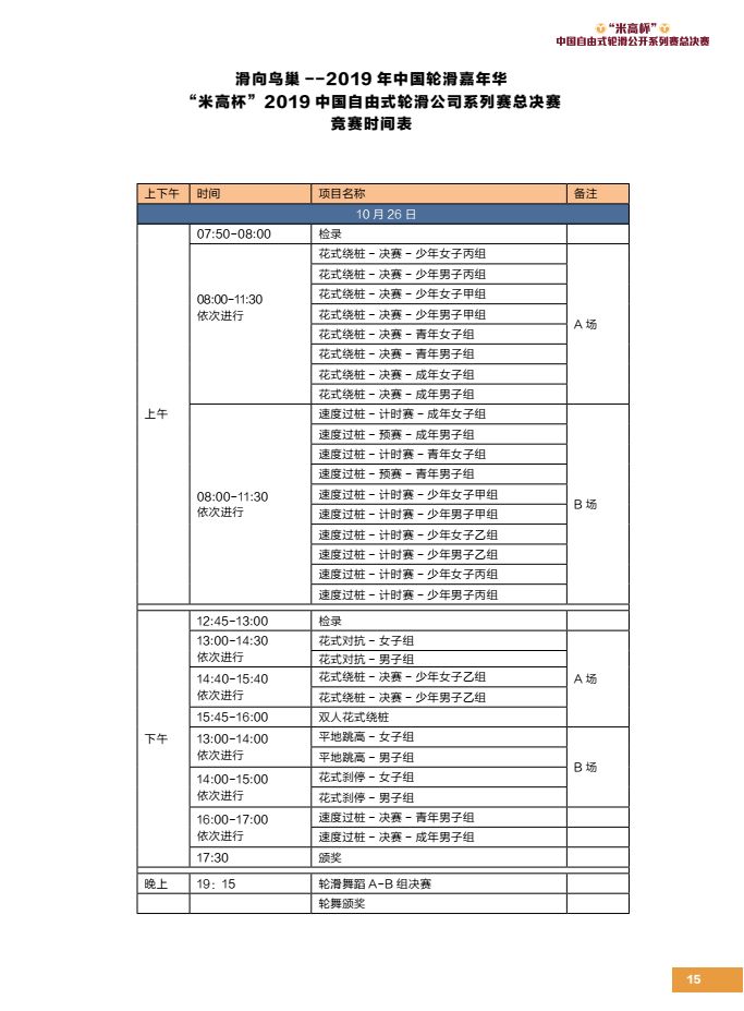 “滑向鸟巢”——米高杯中国自由式轮滑公开系列赛总决赛秩序册