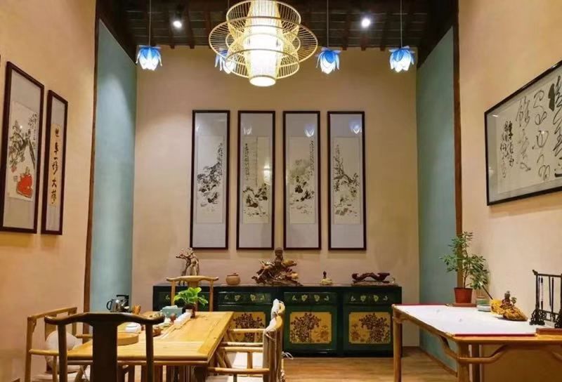 云沧海民宿位于蒋坝老街北首,在保留原本老建筑的基础结构上,增加了很多的新中式元素,将小镇特有的文化融于细节之处。民宿有酒吧有茶室,还有庭院里的露天咖啡座,在素色水泥、绿色植物、原木家具营造的空间中,散发着时尚清新、又雅致古朴的氛围。