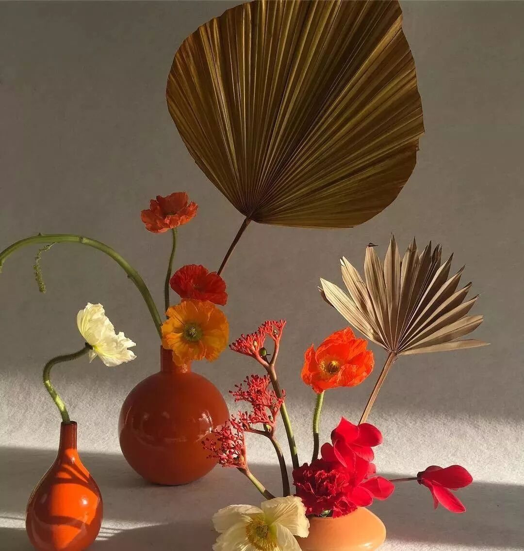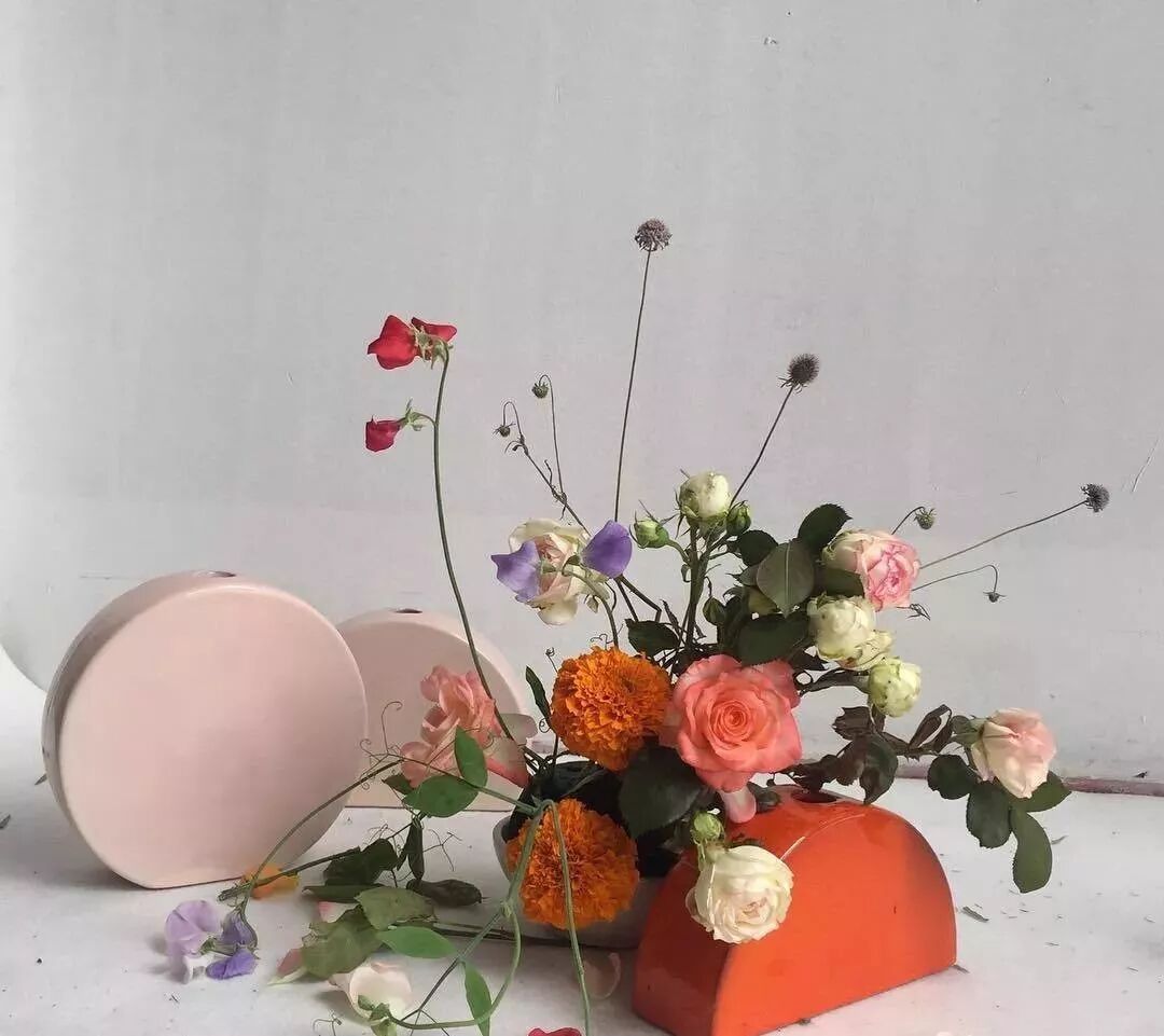 现代自由式插花在花材花器、造型构思和色彩配置方面更加自由、随意。通常蕴含的主题也与创作者性格、爱好有比较大的关系,有抽象、个性的特点。