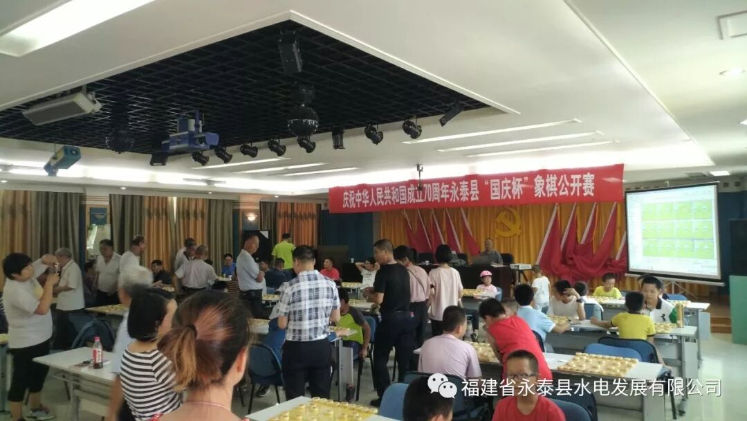 为庆祝中华人民共和国成立七十周年,弘扬和传承民族文化,广泛开展全民健身运动,竭力打造健康促进企业,推动企业的文化建设,在节日期间丰富城乡群众的业余文化生活,由县文体旅游局牵头,县象棋协会承办,多个企业、部门协办的永泰县“国庆杯”象棋公开赛,于本公司七楼道德讲坛燃起战火。