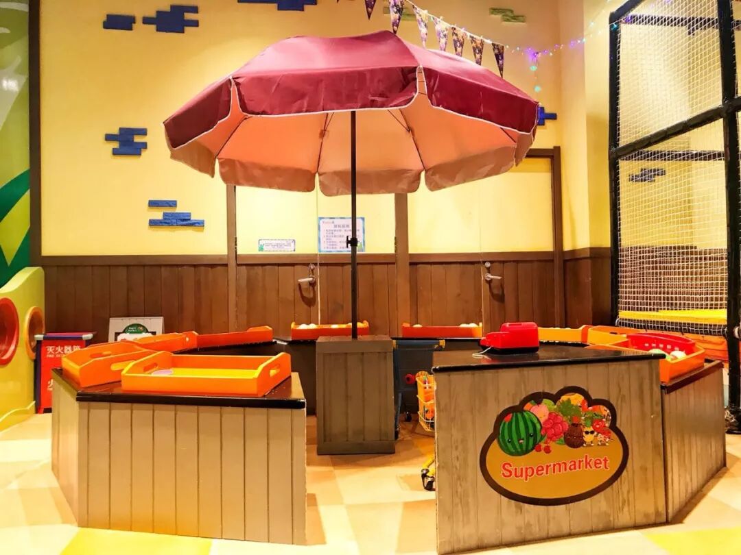 乐园外围设置了休息椅,家长即可以进去陪伴孩子,也可以在这个区域休息。