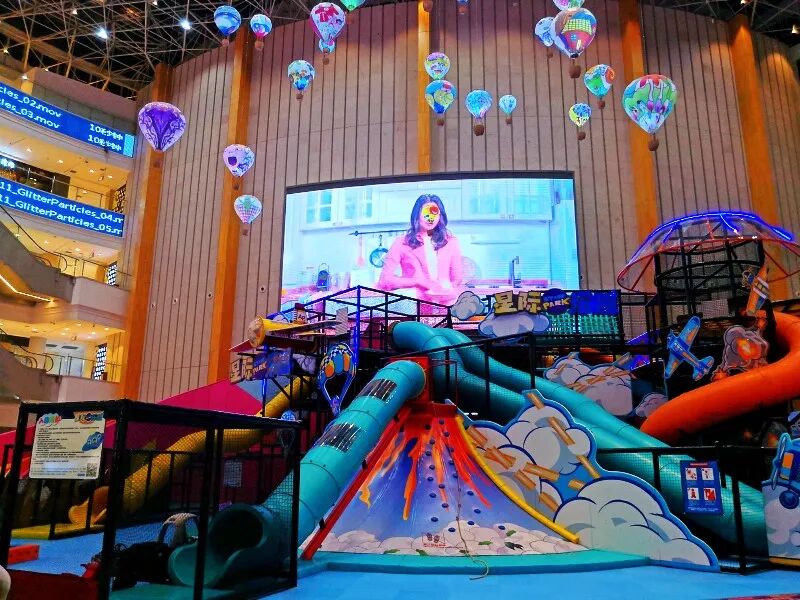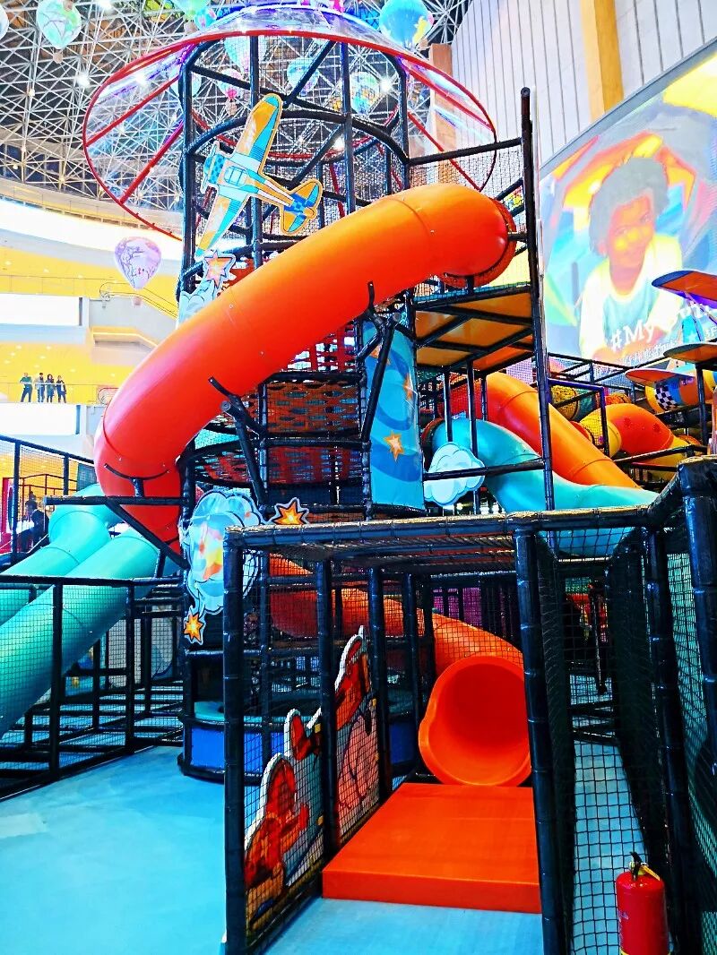 屹立在红博中央公园的冰场旁边,挑高三层近10米高度的星际主题乐园,集魔鬼滑梯,波浪滑梯,旋转滑梯三大体验,高度近7米的红色魔鬼滑梯,整个滑面角度足足达90度,急速自上而下,感受心跳加速的快感。