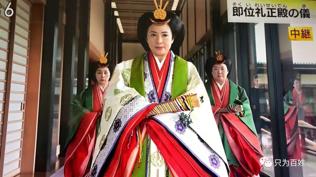 然后,雅子皇后身穿由御五衣、御唐衣、御裳组成的“十二单朝服”,随后登上御帐台。