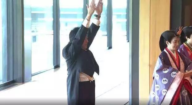 皇后雅子则身着纯白色十二单,梳着名为“大锤发”的发型现身皇居,在德仁天皇行拜礼后,她也紧随着前往行礼。