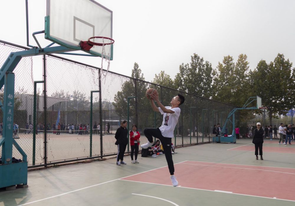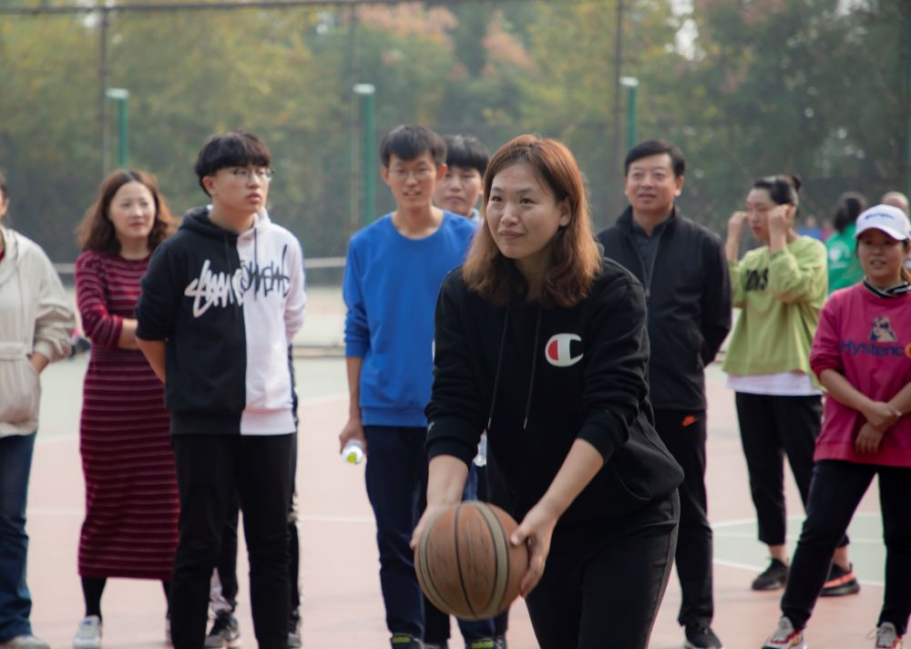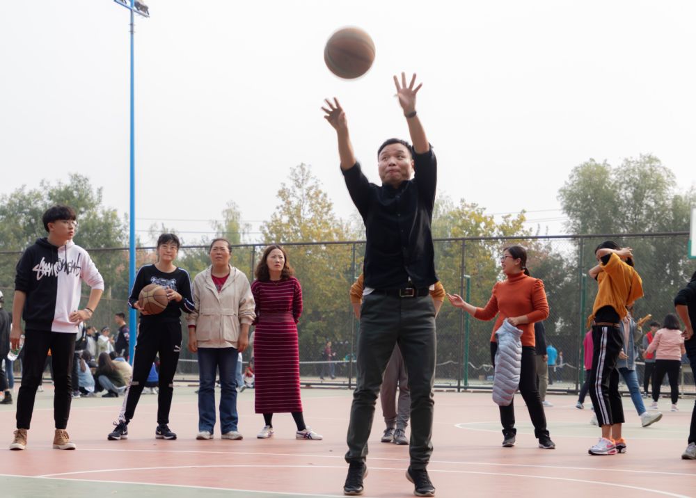 篮球场上的比赛则更加激烈,平常严肃认真的老师到球场上也一刻不敢马虎,握球、瞄准、起跳,球进了!老师们的进球赢得了场上同学们的阵阵喝彩。