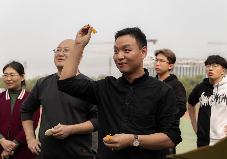 飞镖投掷比赛吸引了很多同学观看,影视制作系党支部书记刘宝坤、党支部副书记兼团总支书记王志带领老师们积极准备,他们站在线外,眼睛紧盯着靶心,瞄准,手发力,投中了!
