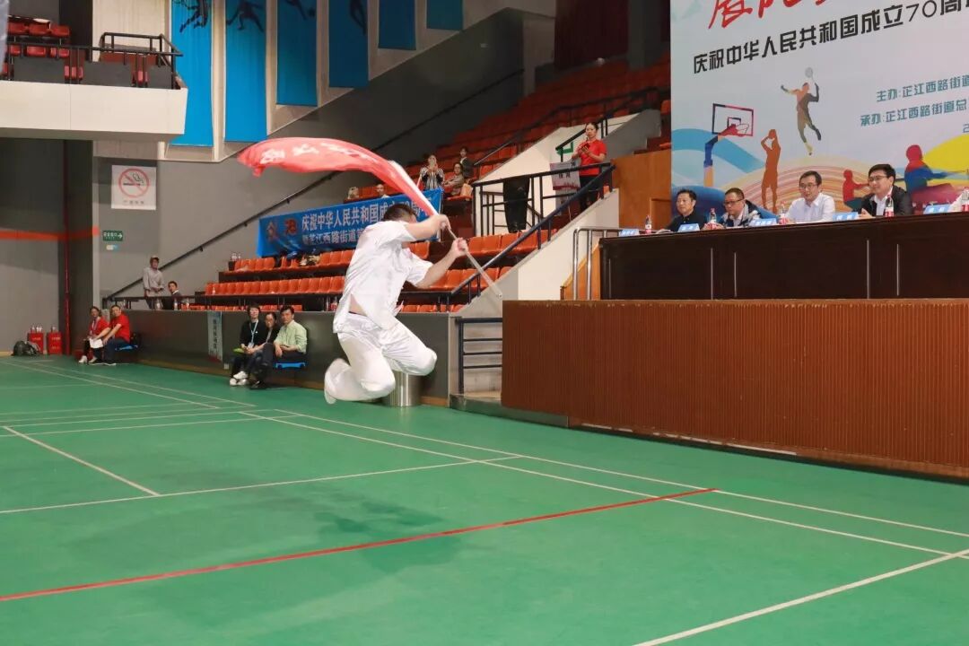 辖区两新组织企业代表程飞雷进行《舞动芷江西》舞旗表演