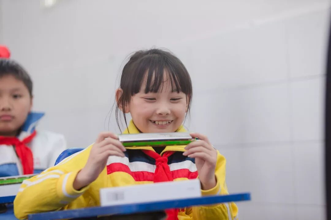 从生涩吹响口琴的害羞,到最终下课时全班同学一起吹响《小星星》歌曲的悦耳,第一次拥有自己乐器口琴的孩子们,在詹老师的细心指导下,对音乐有了更近的理解;而在康艳老师的美术课上,孩子们纷纷拿出刚刚收到的画笔,画出了自己心中最美的祖国,也第一次从老师口中了解到画画这门课还有着着色、线条这些专业的知识。从音乐到美术,从口琴到画笔,从音符到色彩,一份份美好祝福在这次短暂却温暖的课堂中传递开来。
