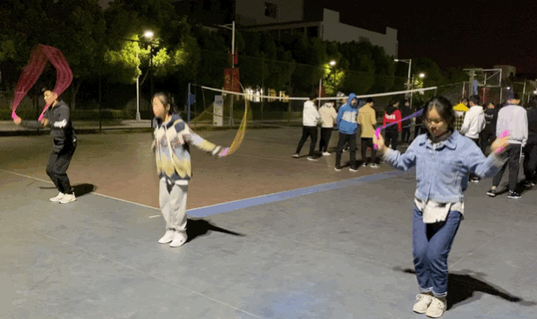 参加跳绳、踢毽子的运动员们利用晚自习时间抓紧训练