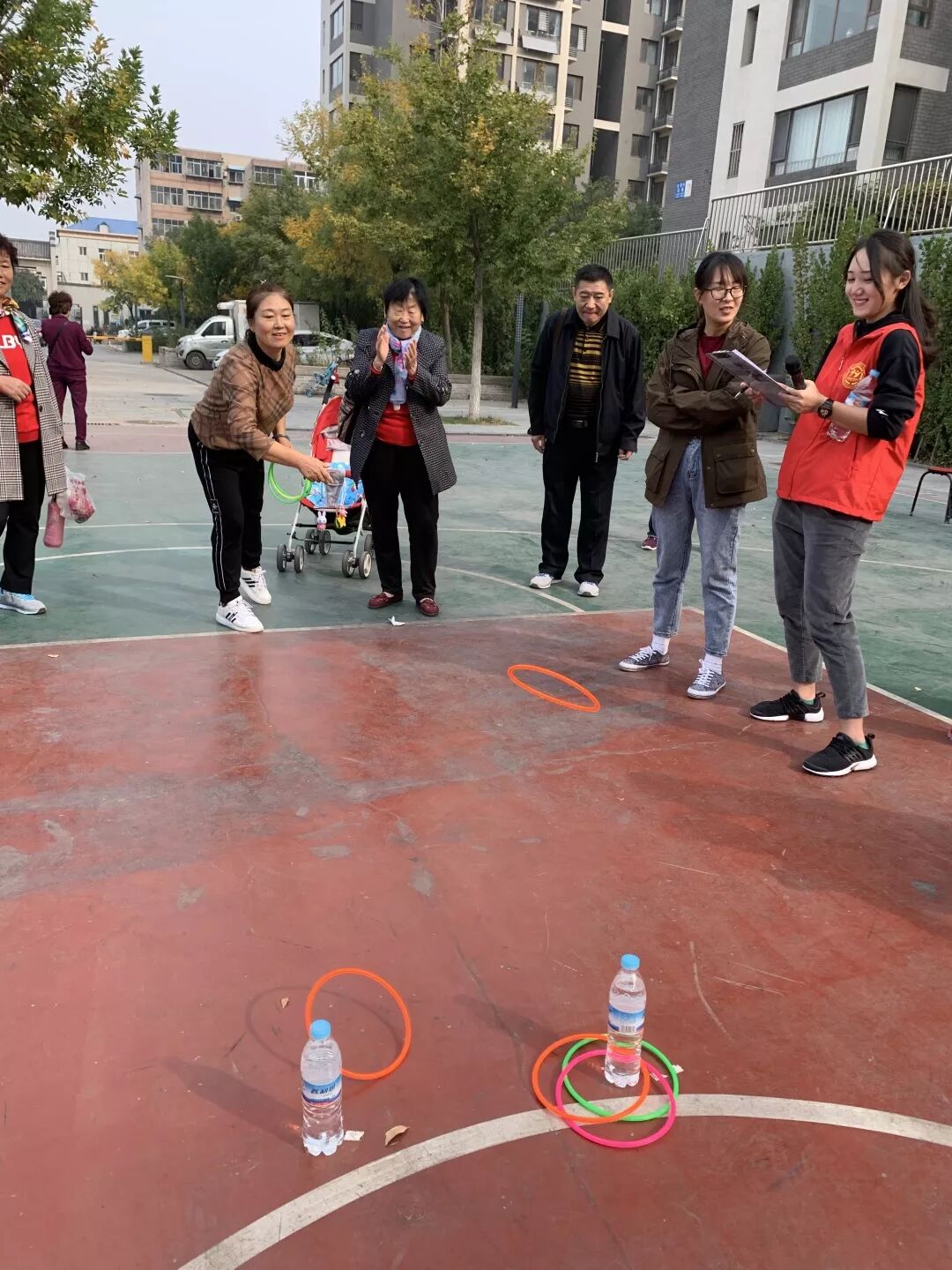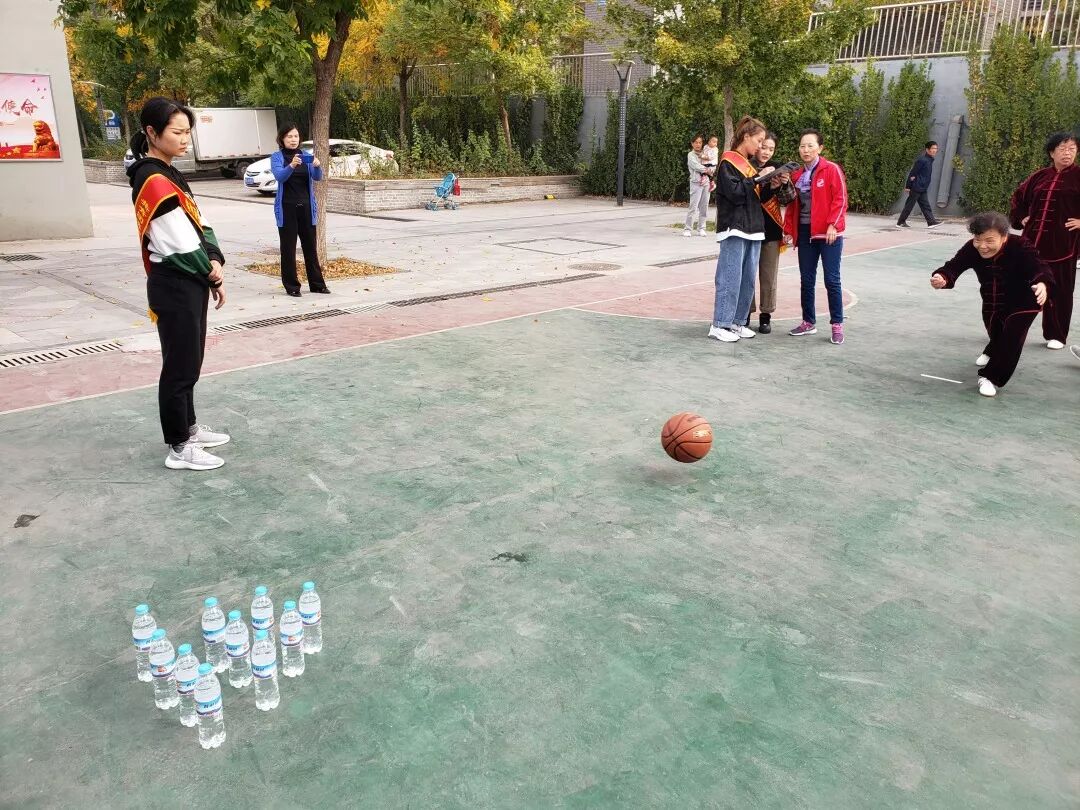 比赛内容共设置了夹玻璃球、套圈、踢毽子、保龄球和拔河五组比赛项目。活动一开始,社区太极队现场表演了《杨氏太极十三刀》为本次运动会助兴。随后居民们踊跃报名,每个运动项目的比赛地点都聚集了大量选手,加油声、鼓劲声和呐喊声一浪高过一浪,大家通过各自的努力来争取好成绩,比赛者和观众们的脸上都挂满了开心的笑容。
