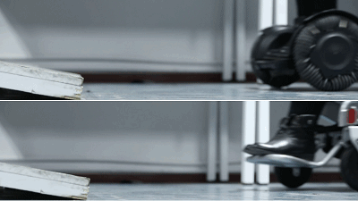 因为全向轮朝向永远向前,当遇到障碍物时,可以直接跨过障碍,而不会像传统轮椅的万向轮,遇到障碍就跑偏,出现轮友们常遇到的“卡轮”现象。