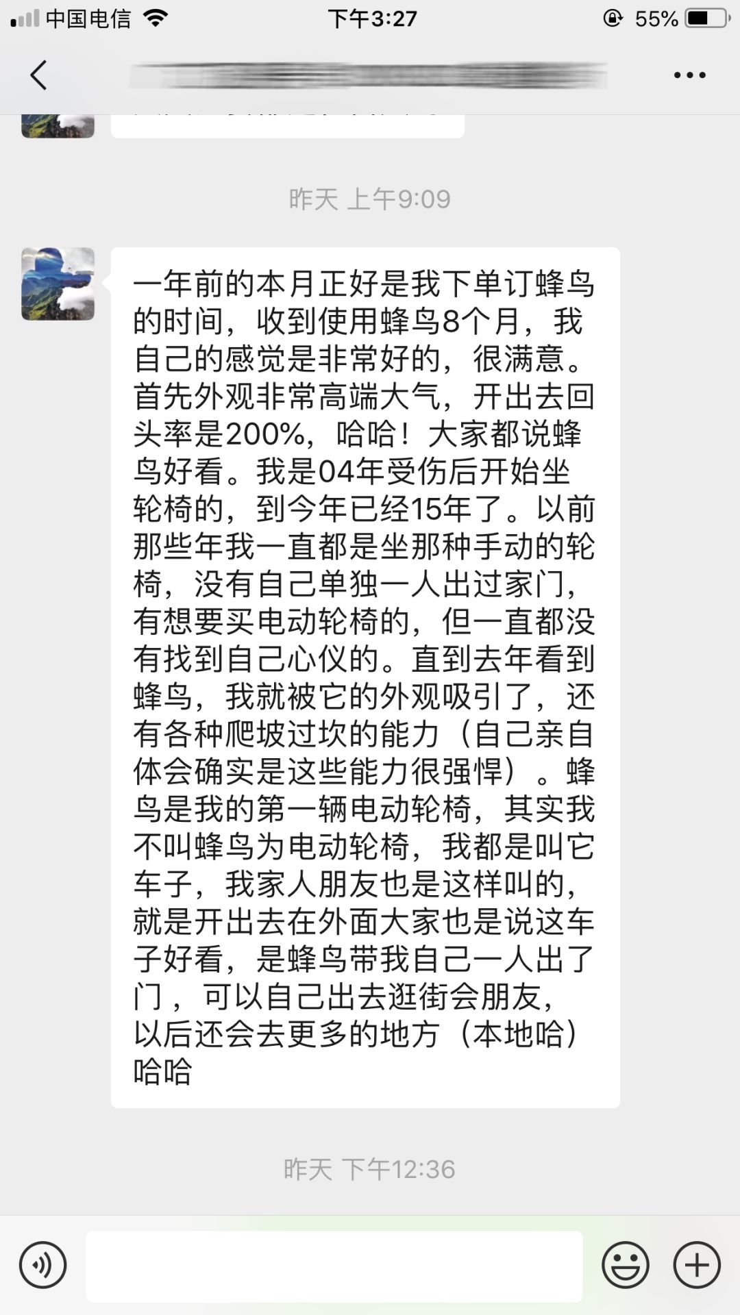蜂鸟代步车今年以小步快跑的方式多次在硬件上进行了改进与迭代,获得了客户的广泛好评。来看看大家都是怎么说的吧: