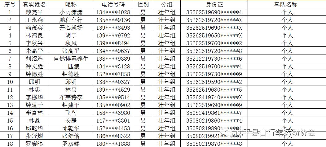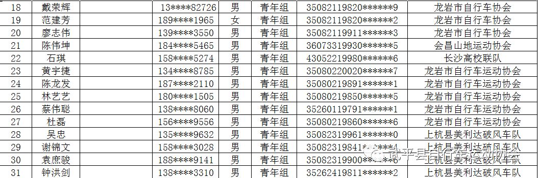 26日09:00——18:00武平自行车运动协会办公室