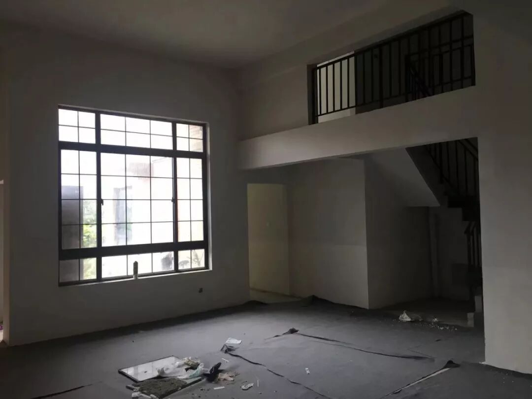 房子是联排叠墅,一跃二的户型,四室两厅,带约60㎡花园