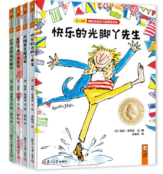 把昆汀布莱克的书放一起出版的小套装,都是很乐的故事,分别讲了一则乐观的故事,一则富有想象力的故事,一则爱与被爱的故事和一则不怕失败坚持梦想的故事。昆汀布莱克爷爷风格鲜明,是大爆款《罗尔德达尔》的绘制作者。