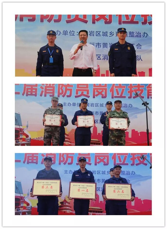 区应急管理局局长尚扬玉为获奖队员颁奖经过一天的激烈的角逐,院桥镇专职消防队、北洋镇专职消防队、头陀镇专职消防队分别获得乡镇专职消防队团体前三;上郑、富山、北洋分别获得志愿消防队团体前三。