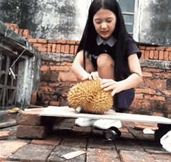 7.徒手劈西瓜什么的都弱爆了,看妹子手劈榴莲