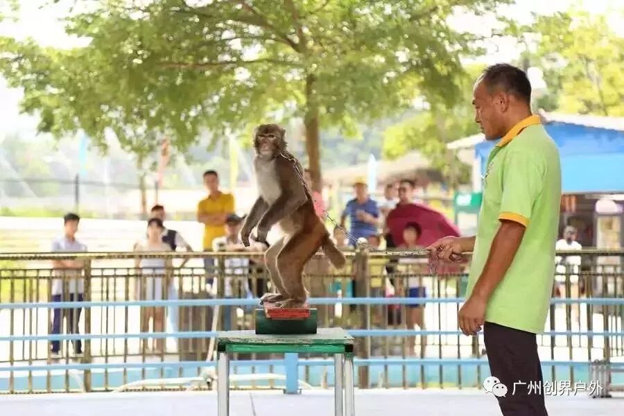 4、动物表演(猴子骑自行车、山羊走单杠、猴子走钢丝、小猪跳水);