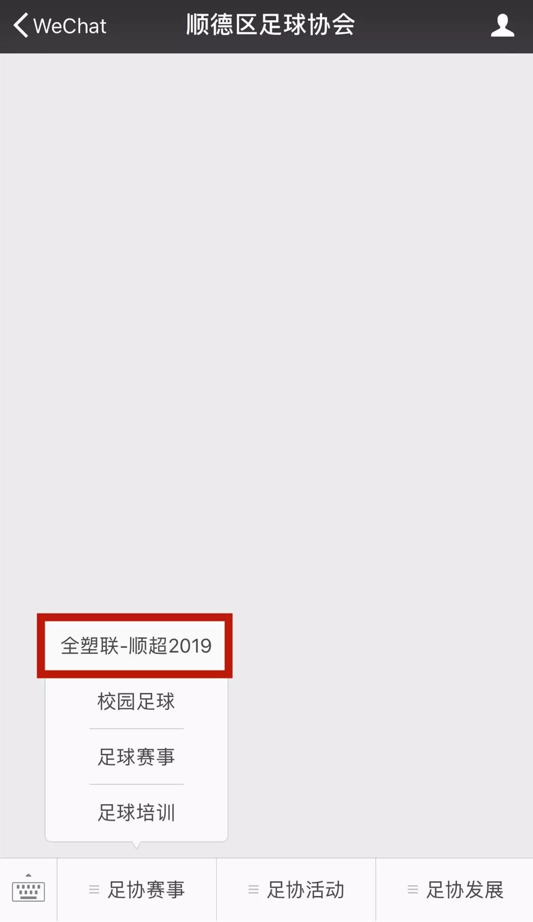 2、第二步进入界面→点击“足协赛事”→再点击“全塑联-顺超2019”。