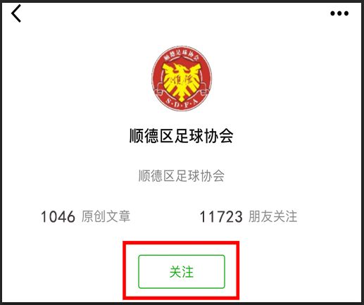 联赛直播指引联赛提供现场高清直播,观众可以选择亲临赛场感受比赛气氛,也可以在手机或电脑上观看比赛,并即时获取赛事大数据分析,多元化转播方式,让更多人观赏精彩赛事,让草根变明星。1、第一步搜索公众号:顺德区足球协会→点击关注顺德区足球协会。