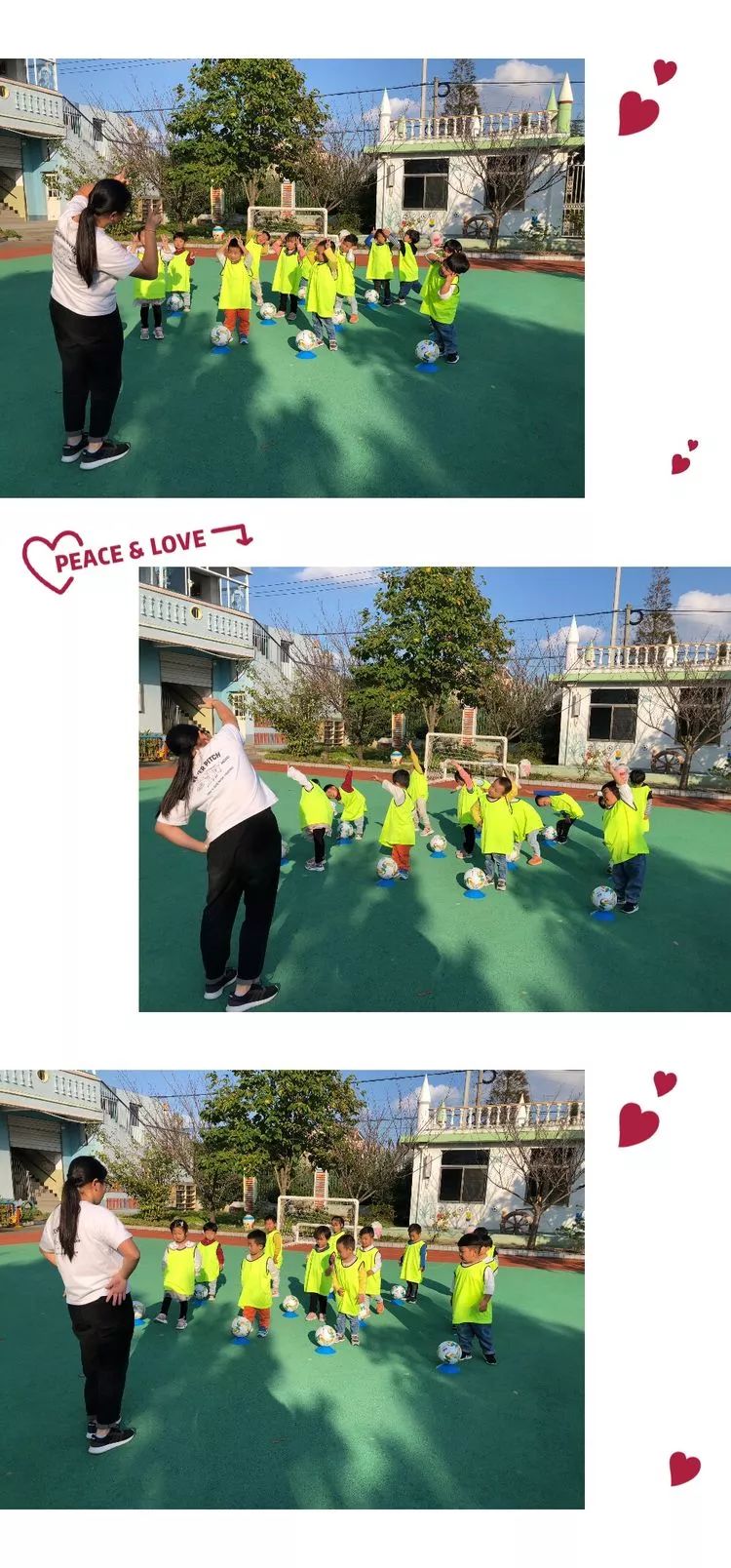 大家一起来 瞧!宝贝们一听说足球朋友会和自己一起游戏,一个个都非常认真。随着欢快的音乐,甩甩胳膊、弯弯腰、踢踢腿,他们认真的样子,是不是十分可爱呢?