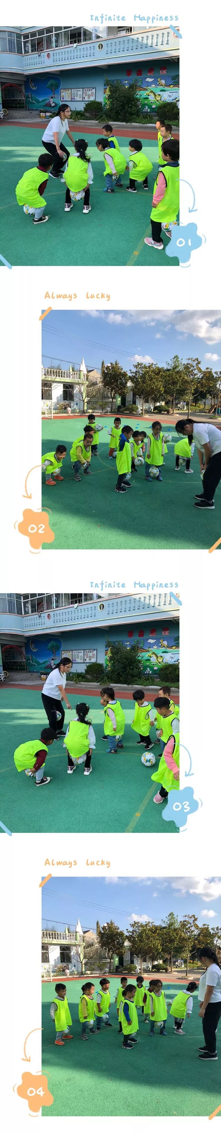 金秋的阳光温馨恬静,金秋的微风和煦轻柔,金秋的蓝天白云飘逸,金秋的田野遍地金黄。在这美好时刻小一班的宝贝们和足球来了一次欢乐的约会。