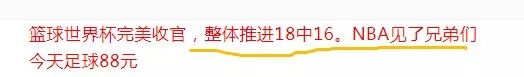 昨天10.24赞赏4场4黑NBA推荐3中3,其中一场因为是私发(没有及时更新在给料小程序,未纳入战绩),净赚2手,最近看风气吧(篮球世界杯推介18命中16)
