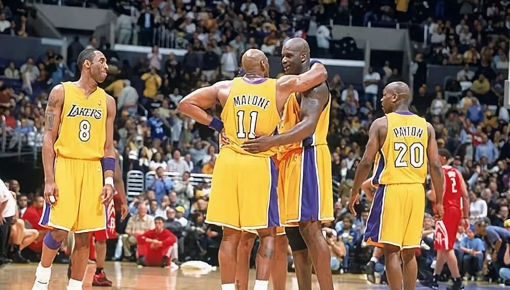 那一年虽然湖人的化学反应极差,但是好歹也是披着银河战舰的外皮。手套、黑曼巴、邮差、鲨鱼的组合将马刺的进攻封的死死的。