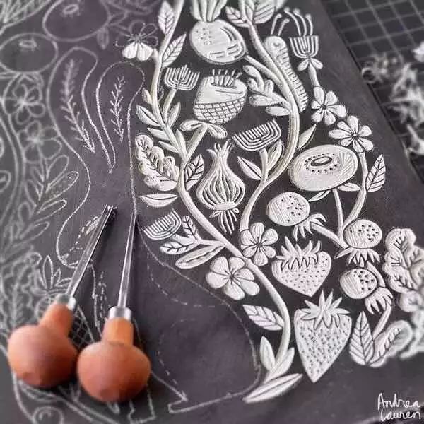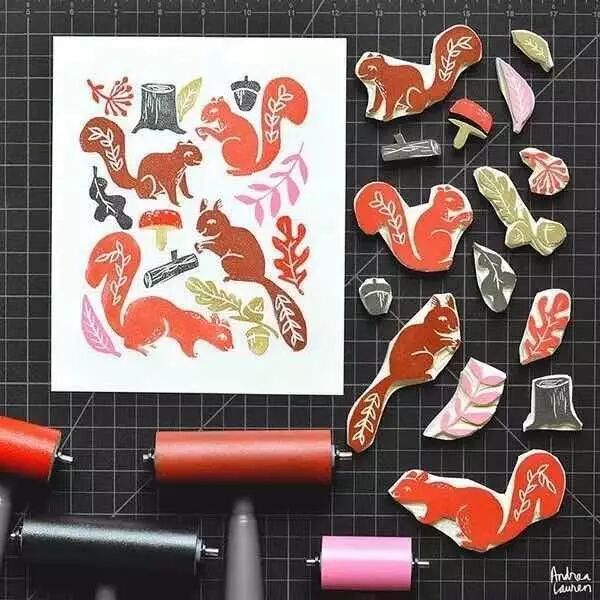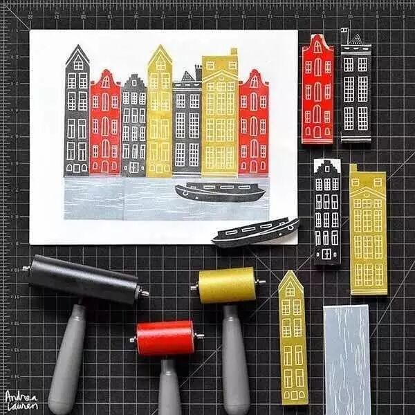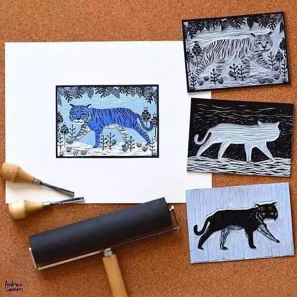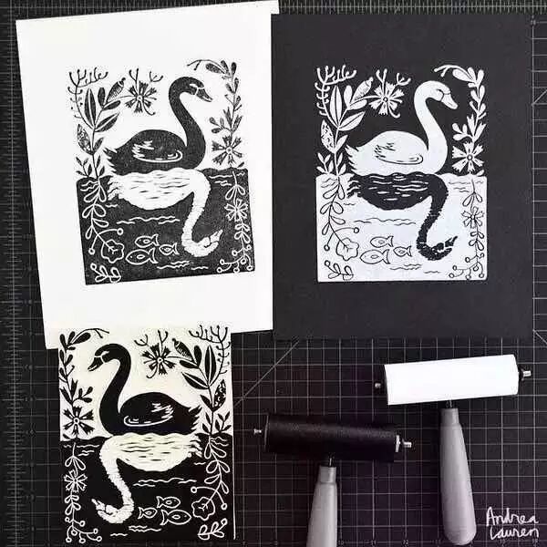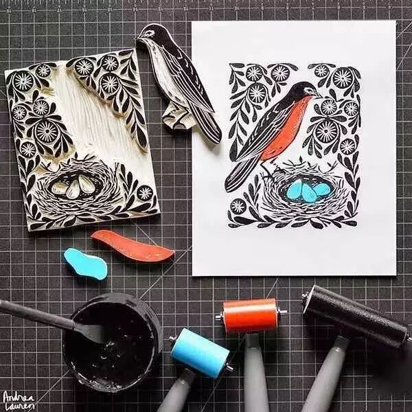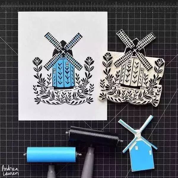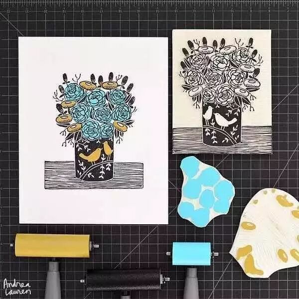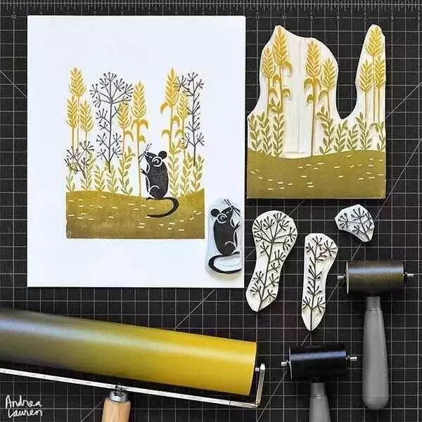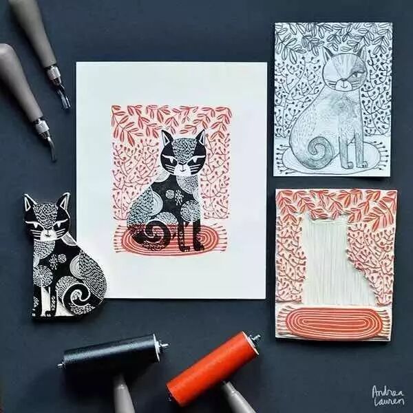 他创造的版画造型概括,有设计感,坚持手工艺制作。