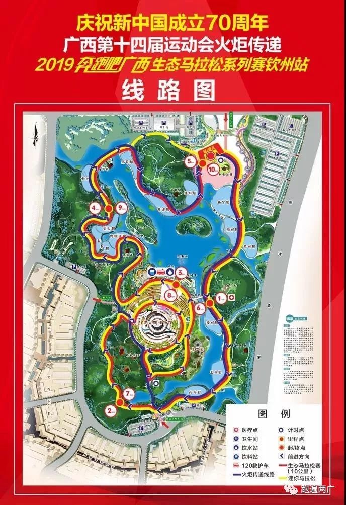 广西第十四届运动会火炬传递暨2019“奔跑吧广西”生态马拉松系列赛(钦州站)马拉松赛的路线规划均围绕国家4A级景区园博园设计