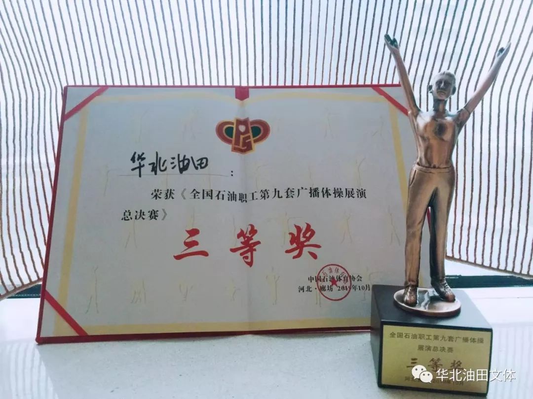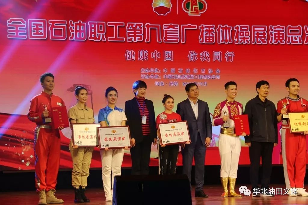 10月24日,“全国石油职工第九套广播操总决赛”在廊坊管道局影剧院举行,油田公司代表队荣获三等奖,总排名第四!