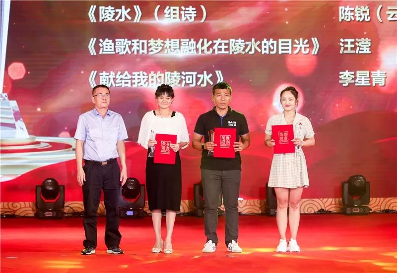 本次颁奖典礼共分诗意陵水、不忘初心牢记使命、致敬经典等三个篇章,一声祝愿、一句呐喊、一次释放,将陵水县历史人文底蕴、秀美的自然风光、少数民族风情、经济社会发展以及中国共产党人拼搏奋斗的精神面貌从笔墨中跃然而出,歌颂了一代又一代人万众一心、砥砺前行的家国情怀。