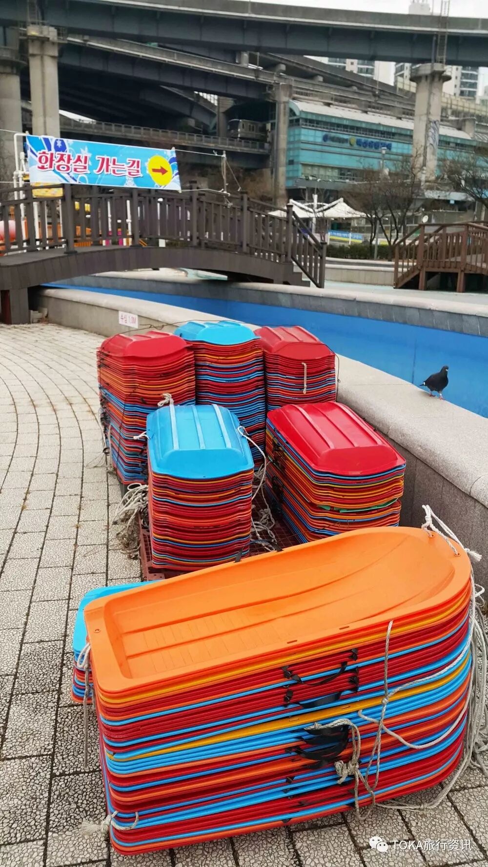 船、弹跳床等,价格从3,000到5,000韩元不等。玩得累了,到一旁的美食摊贩来一碗热呼呼的辣炒年糕,或是去咖啡厅歇歇,充足电后再继续玩吧!