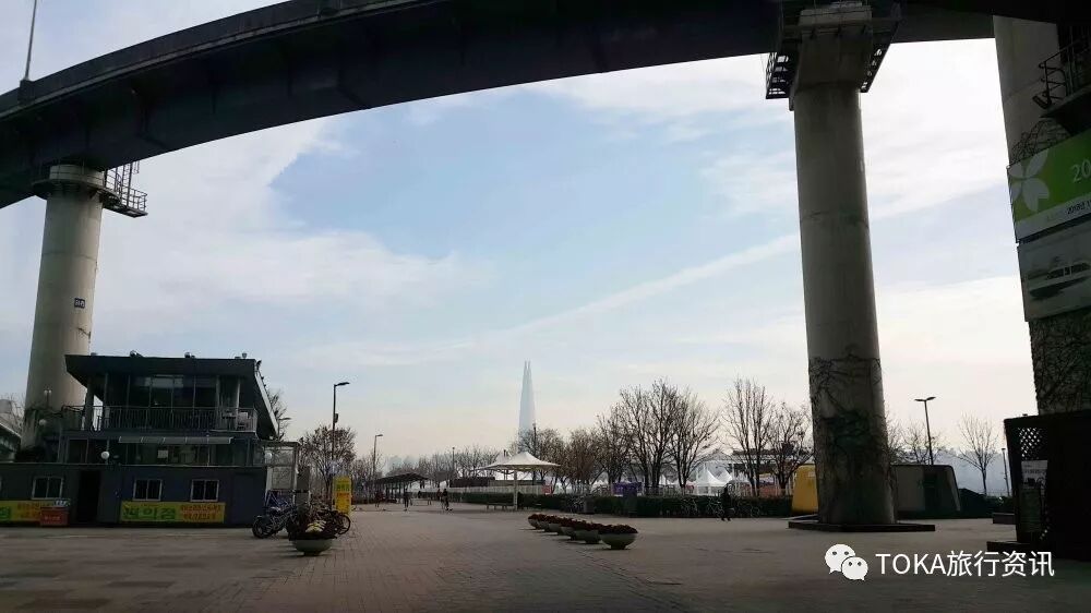 然后转向左边会看到一栋非常高的大楼,它就是乐天世界塔,朝着大楼方向直走5分钟就会看到雪橇场。