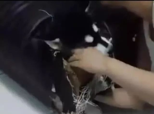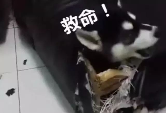 沙发成这样了,主人肯定是很生气的,但是也没有办法,自己养的哈士奇,哭着也要养完,主人最后还亲自把二哈给弄了出来。